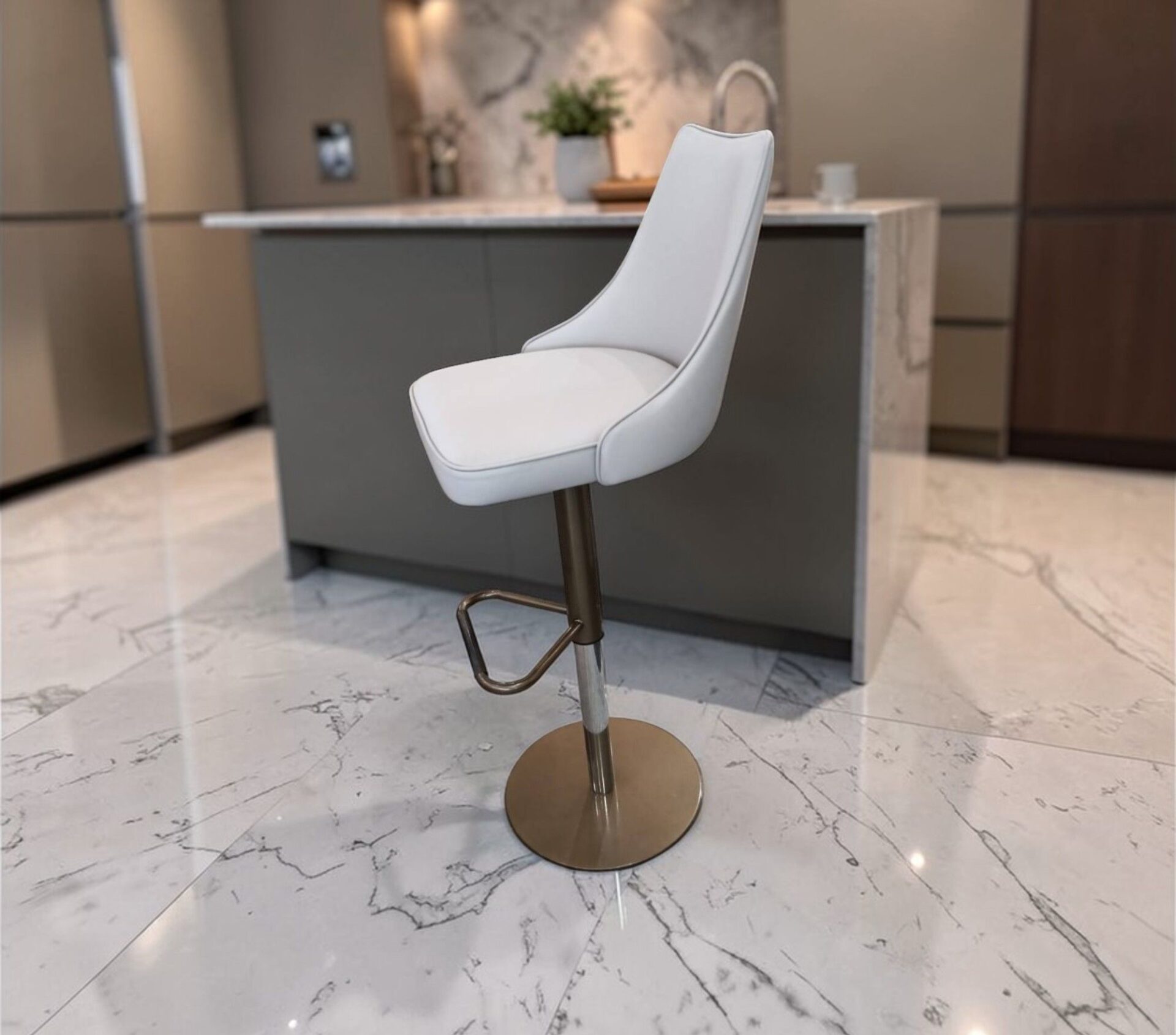 Barska stolica Clara savršeno se uklapa u savremene kuhinje, barske prostore i luksuzne enterijere. Njena kombinacija materijala omogućava lako uklapanje sa različitim stilovima nameštaja.