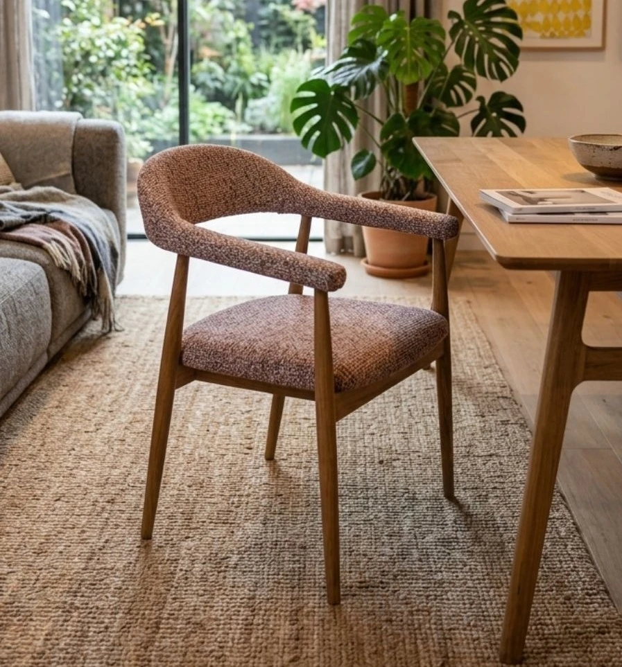 Trpezarijska stolica Addy sa rukonaslonima izrađena od masiva hrasta pruža vrhunsku udobnost i stabilnost za svakodnevnu upotrebu.