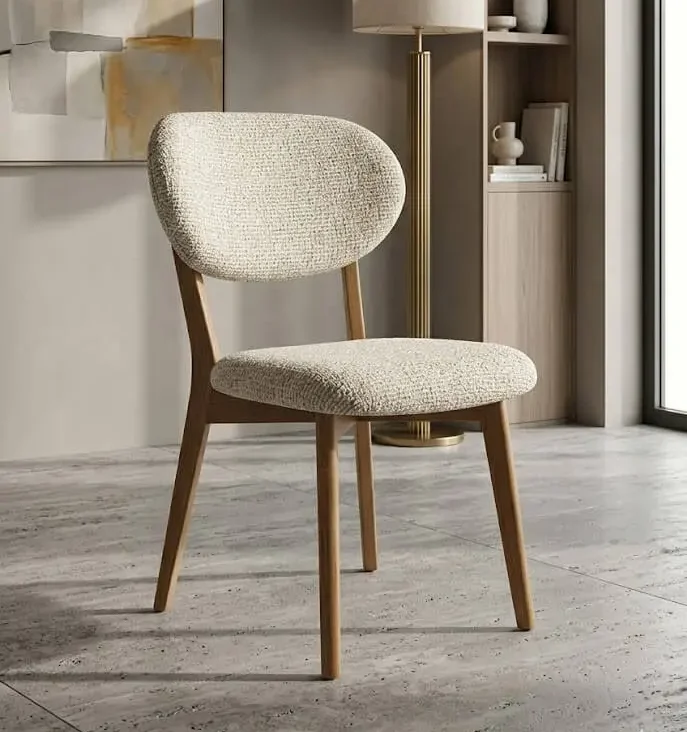 Trpezarijska stolica Lucarno izrađena je od masiva hrasta i tapacirana kvalitetnim štofom lakim za održavanje. Zahvaljujući stabilnoj konstrukciji i udobnom sedištu, pruža visok nivo komfora u svakodnevnoj upotrebi. Moderan dizajn i širok izbor boja omogućavaju lako uklapanje u različite stilove trpezarije.